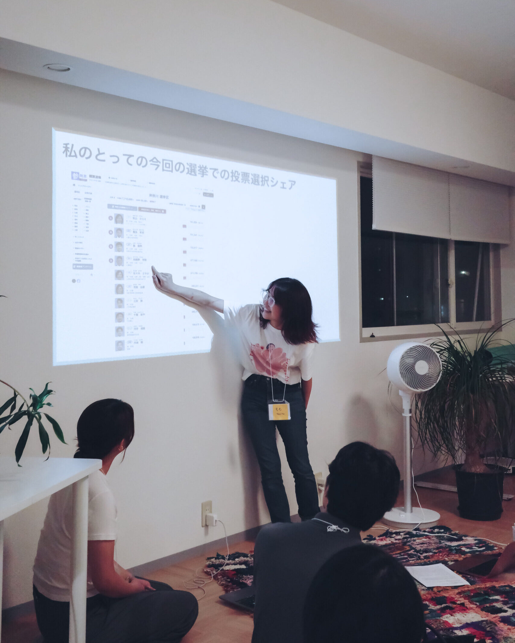 最初のテーマは「今回の選挙でワクワクしたこと、モヤモヤしたこと」。選挙戦を振り返りながら、参加者同士で感じたことをシェアしました。